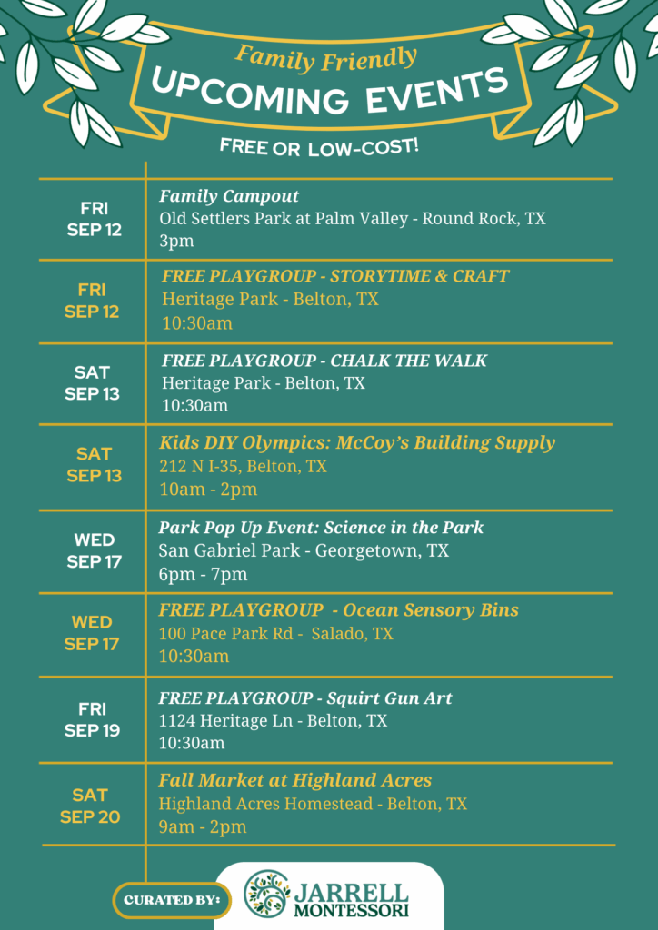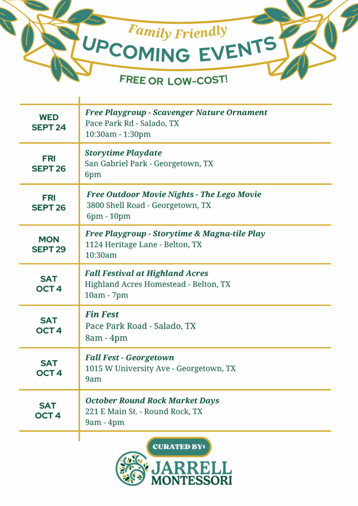 Salado 9/24 Free Playgroup: Scavenger Nature Ornament 10/4 Fin Fest 2025 Georgetown...