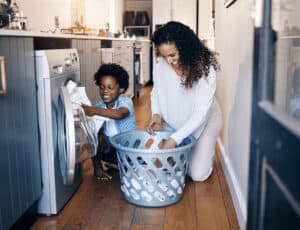 Montessori relies on learning by doing, which you can do by creating hands-on experiences or moments for your child. It may feel frustrating at first if you aren’t used to it, because for this to work, you need to allow your child to take their time and make mistakes (and we fully grown humans are busy people, so this can be difficult). If you visit a Montessori school, then you’ve seen students folding towels, cleaning messes and engaging hands-on with their classroom environment. Same idea for you but with activities that you already need done around your house. Think about how much you do already…putting away dishes, folding clothes and putting them away…your child can do these things, too! And young children WANT to do these things, especially with you. They love helping and love your attention! Here are some examples of activities your child can do or learn to do.
